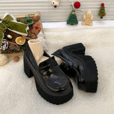Mary Jane Short Heel High Heels Small Height-increasing British Platform Loafers Leather Shoes For Women