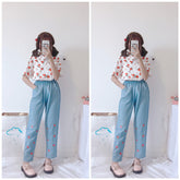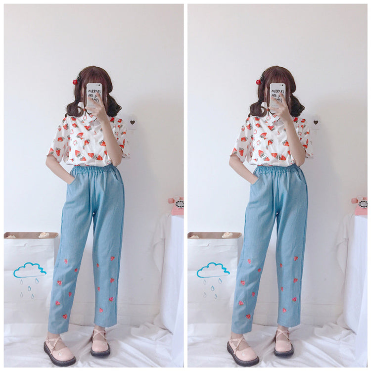 Embroidered strawberry jeans