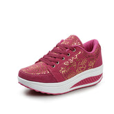 Womens Sneakers Shoes Wedge Flowers Decoration Height Increasing