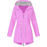 Womens Waterproof Raincoat Casual Basic Outdoors Drawstring Trench Lightweight Drawstring Jackets Hiking Clothes For Women